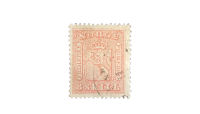 Del av våpenserien fra 1863 som var den første perforerte frimerkeserien trykket i Norge.