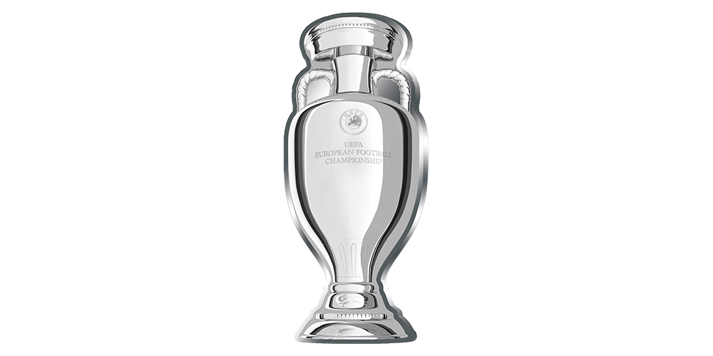 Du kan nå bli eier av en offisiell UEFA sølvmynt i ett fantastisk design, formet som dette ikoniske Henri-Delaunay-trofeet! Mynten er preget i 99,9% sølv og har ett opplag på KUN 2024 eksemplarer på verdensbasis.